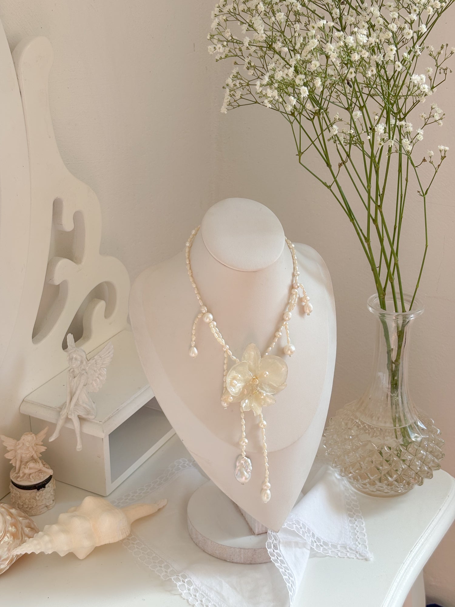 I’ve always felt that the world has lost a bit of its color and beauty. The kind once found in ornate buildings, objects made to be cherished rather than sold, and details created for love, not profit. Through my work, I simply wish to remind people that nature and beauty are nourishment for the human soul. These things matter deeply in a world that so often measures worth in numbers alone. Each piece is created slowly with intention, from real flowers and timeless, high-quality materials.