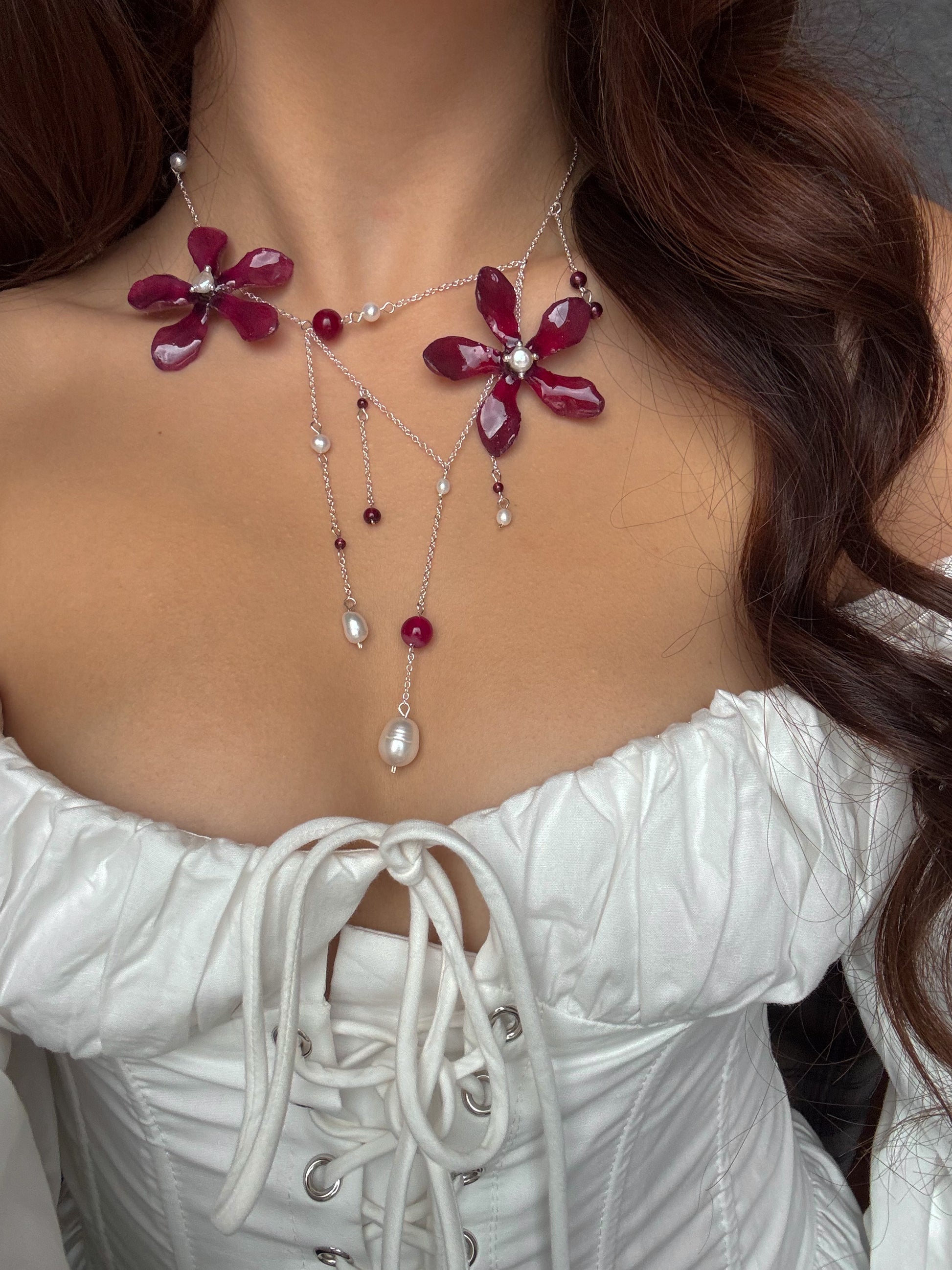 Among the darkest entries of the old bestiaries lies the banshee, a wraithlike herald whose presence stains the air crimson long before she is seen. Her flowers are said to bloom where grief has ripened, their deep hues like beads of blood scattered in warning. Those who claim to have glimpsed her speak not of screams, but of a trembling in the chest, a chill in the marrow—she is no spirit of malice, only the echo of something once loved, now gone.